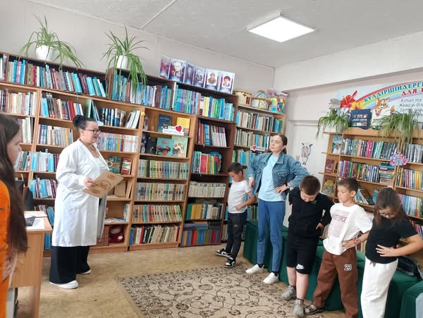 23 июня - шестой день летнего лагеря прошел познавательно и интересно . Ребята отправились на экскурсию в районную библиотеку, где для них была подготовлена увлекательная программа. Библиотекарь подготовила мероприятие "В гостях у доктора Айболита", ребята поговорили о важности соблюдения режима дня, поучаствовали в отгадывании загадок, поделились своим режимом дня.