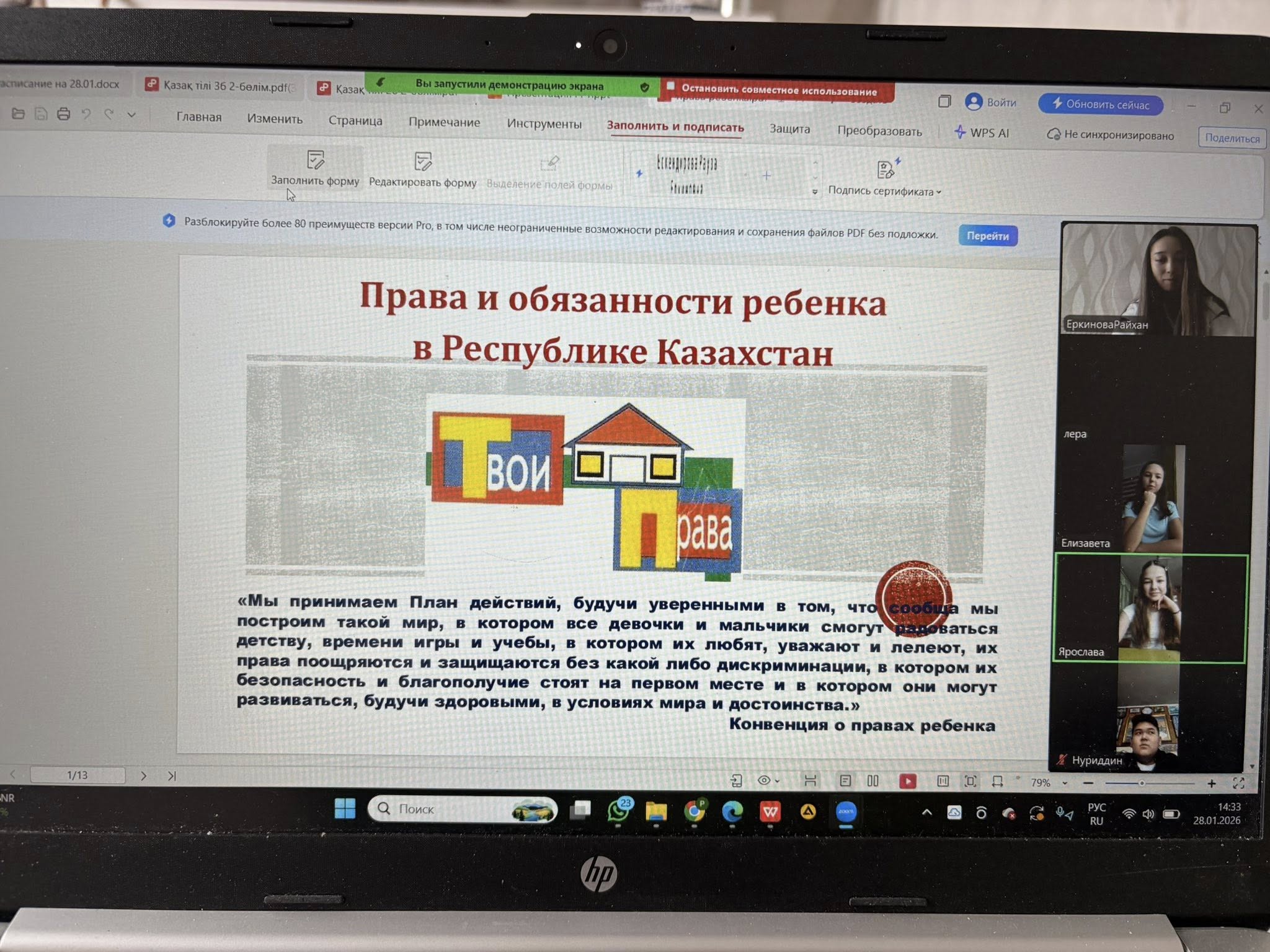 Мероприятие прошло в онлайн-формате на платформе Zoom совместно со школьным парламентом в виде акции правовых клубов. В ходе встречи были организованы обсуждения, направленные на разъяснение прав и обязанностей обучающихся, а также на формирование ценностей законности, порядка и ответственности.