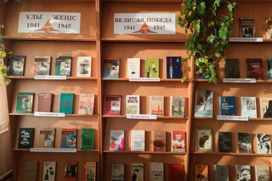 К 80-летию Победы в КГУ «Саумалкольская средняя школа №1» библиотека оформила развернутую книжную выставку «Великая Победа 1941-1945».
